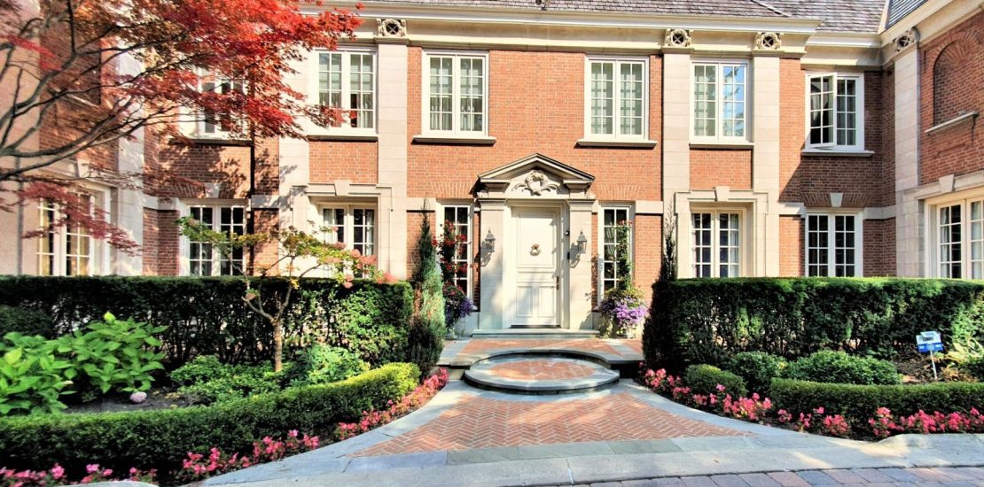 Forest Hill residence spectacular entrance Sophistication of formal garden Enjoy one of Toronto's most prestigious and beautiful communities with a unique village feel. Proving that elegance and simplicity never go out of style, this classy front entrance landscaping in Forest Hill neighborhood are all about symmetry and balance. Neatly manicured, the spectacular entrance of this